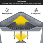 Designed with practical drainage holes across all shelf surfaces. this unit effectively prevents water accumulation that could lead to rust or mildew. The efficient water runoff system keeps your items dry and maintains the shelf’s pristine condition over time.