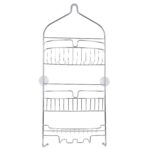 Organize your bath and maximize your storage with the Kenney 3-Tier Hanging Shower Caddy. The soft curves bring a more modern. yet functional. style to this classic bathroom storage solution. This steel shower caddy is rust-resistant and allows you to store all of your shower essentials in one place. This caddy features two shelves. two hooks. and a soap dish. The deep baskets allow for varying size bottles. The wire soap bar shelf allows excess water to drain and air to circulate. drying the bar of soap. The two hooks are great for hanging loofahs. washcloths. or other items like a waterproof speaker. The caddy comes with a rubber collar and suction cups to help keep it in place. The collar also prevents scratches to your showerhead. and the suction cups reduce the need to balance items. This caddy measures 24 H x 11 W x 4.5 D and can be hung from showerheads with necks up to 0.75 in diameter.