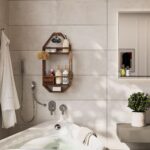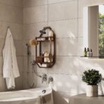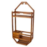 Storage made simple: with this stylish shower and bathtub caddy. all of your necessities will be right there. This particular teak shower organizer has 3 small baskets and 2 hooks. This wood shower caddy also has 2 suction cup that keeps the caddy secure even when the surfaces are wet.Smart design: this organizer has a 3-tier shelf which allows for the storage of products that are of all shapes and sizes. This teak shower caddy for inside a shower will enable you to have all of your showering needs as close to you as possible Also. the 2 hooks are perfect for you to hang washcloths. or loofahsEasy installation: all you have to do is hang the caddy over the shower head and store all of your things. This teak shower caddy can be used with handheld hose-style and rain-style shower heads. There is no hardware or drilling required. You can keep everything secure with the suction cup and the top gripQuality construction: premium grade 100% Indonesian solid teak wood shower caddy. Teak wood which is great for showers. naturally water resistant.Fits most shower heads: the large space at the top is perfect for mounting the caddy. The shower caddy measure 13 x 4.7 x 27 This sturdy premium grade Indonesian solid teak Shower Caddy is a great way to give yourself more bathroom storage. All you have to do is hang it over a shower head and store your showering necessities. This particular teak bathroom caddy has 3 baskets and also comes with extra hooks. The dimensions are 13 x 4.7 x 27. This shower organizer is incredibly sturdy and beautiful. This shower caddy is the perfect size while also still giving plenty of room to store things. Also. this style of wood prevents water buildup. It has been handcrafted so it will last.This Shower organizer resist water naturally and is waterproof. Hang or mount from a shower head. Because of nature of teak wood this shower caddy resist everything naturally. The teak shower caddy freestanding is lightweight but because of it is design it can hold heavy items like ease