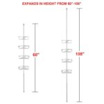 Utopia Alley Tension Rod Shower Organizer. Rustproof Corner Shower Caddy with 4 Adjustable Shelves. Chrome & Matte Black Finish